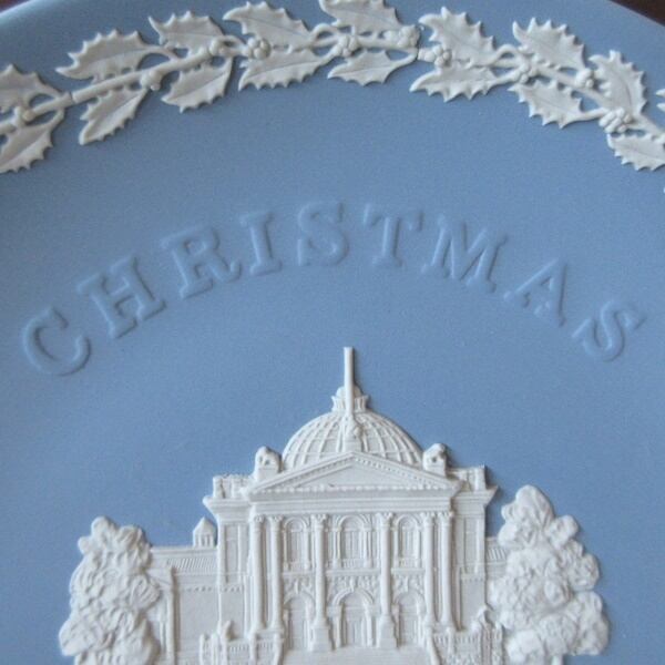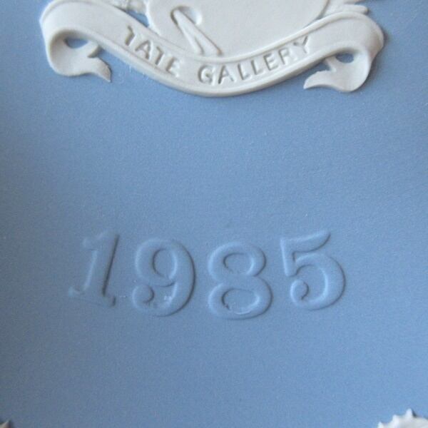 ウェッジウッドのクリスマスプレートは、ロンドンまたはロンドン近郊の有名なランドマークの細かくモデル化された白いジャスパーの浅浮き彫りで飾られています。1985年の記念プレートで、1897年から1932年まではナショナル・ギャラリー・オブ・ブリティッシュ・アートとして、1932年から2000年まではテート・ギャラリーとして知られていたテート・ブリテン(美術館)がデザインされています。