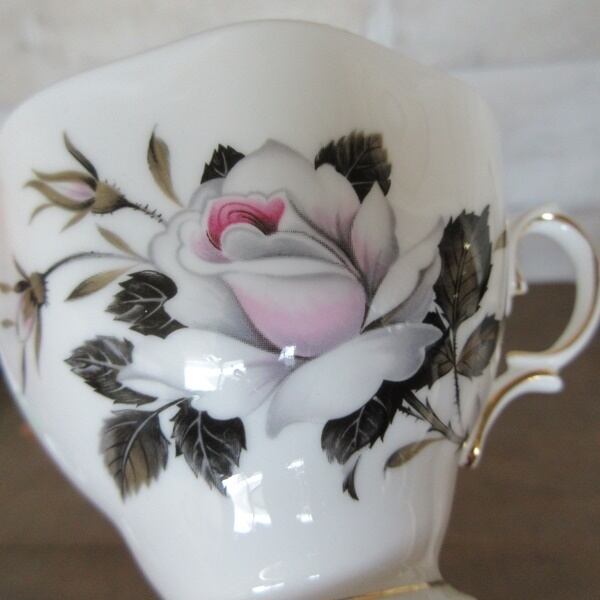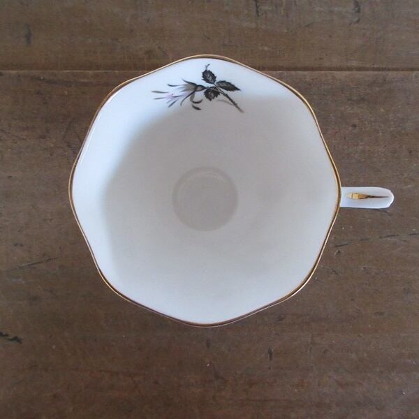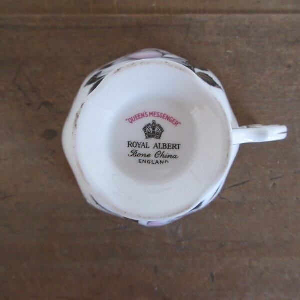 “Queen's Messenger (クイーンズメッセンジャー)”パターンの上品なお品です。1978年に廃盤になった比較的新しいデザインの物になります。マルバーンシェイプと呼ばれる、紅茶とコーヒー兼用で使える少し大きめなサイズのカップです。