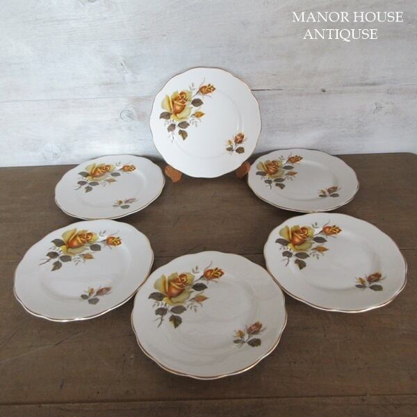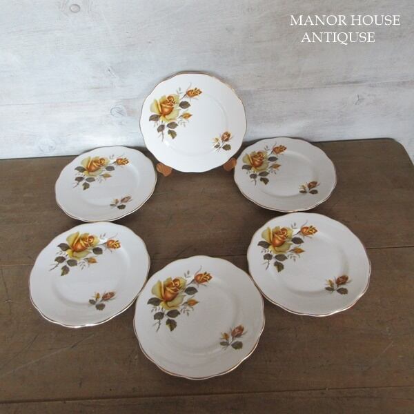 こちらの商品は、イギリスより入荷致しましたヴィンテージ雑貨 イギリス製 ボーンチャイナのケーキプレート6枚です。