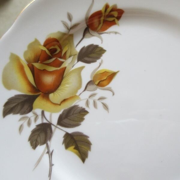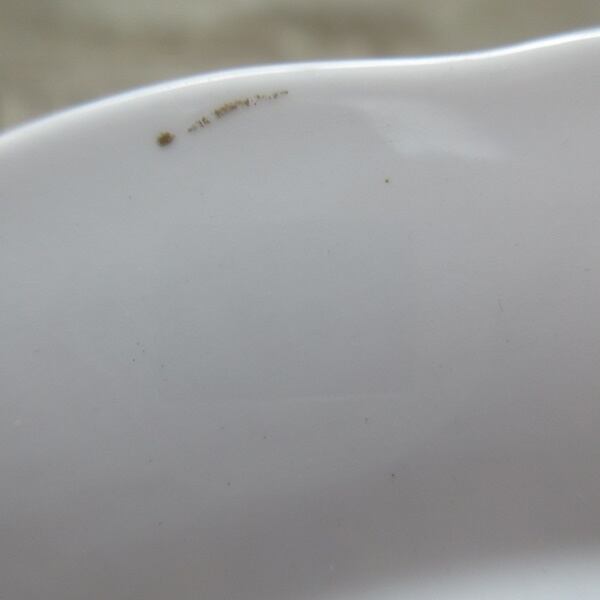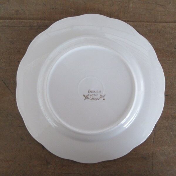 ENGLISH BONE CHINAとバックスタンプがございます。ボーンチャイナとは、陶器や磁器のような、やきものの種類の一つで、「牛の骨(こっかい)」を混ぜて作られるやきものです。そのためボーンチャイナは、骨灰(こっかい)磁器ともいいます。