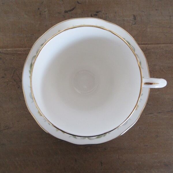 伝統的なイングランドの民謡「グリーンスリーブス」と名前が付けられたイエローとグリーンの優しい色合いでお花が描かれている素敵なお品です。