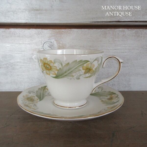 伝統的なイングランドの民謡「グリーンスリーブス」と名前が付けられたイエローとグリーンの優しい色合いでお花が描かれている素敵なお品です。