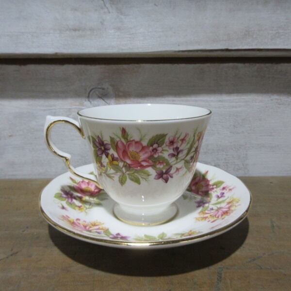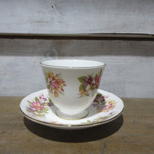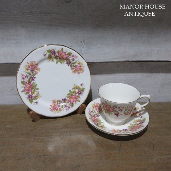 こちらの商品は、イギリスより入荷致しましたヴィンテージ雑貨 英国製 Colclough(コールクロ)のカップアンドソーサー、ケーキプレートのトリオです。