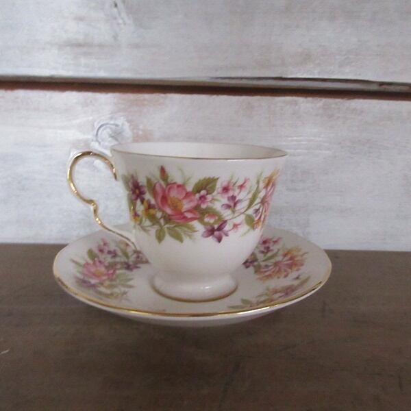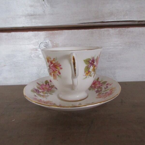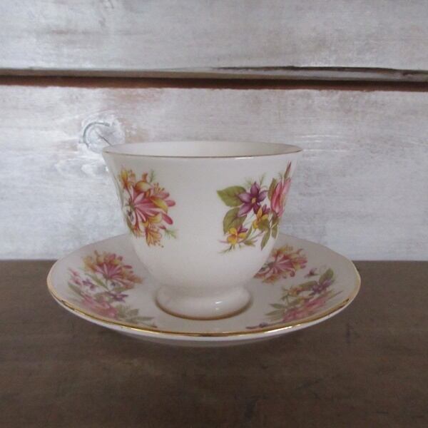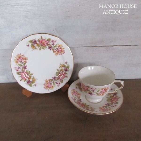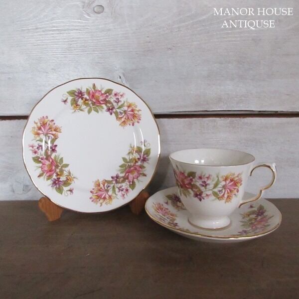 こちらの商品は、イギリスより入荷致しましたヴィンテージ雑貨 英国製 Colclough(コールクロ)のカップアンドソーサー、ケーキプレートのトリオです。