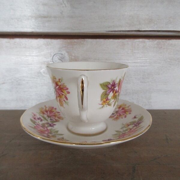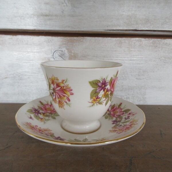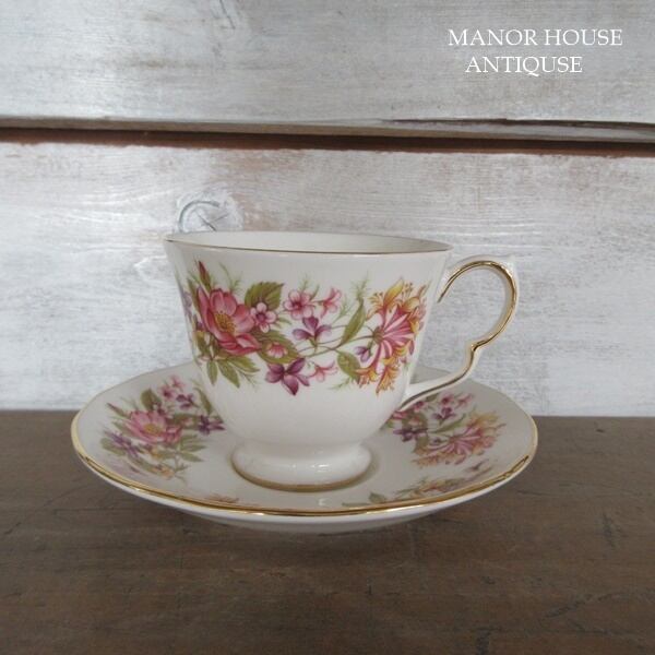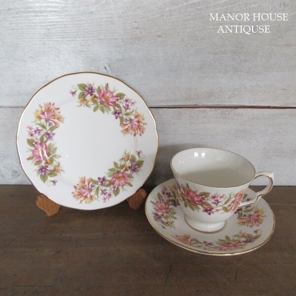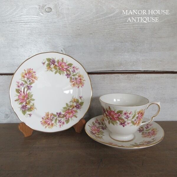 こちらの商品は、イギリスより入荷致しましたヴィンテージ雑貨 英国製 Colclough(コールクロ)のカップアンドソーサー、ケーキプレートのトリオです。