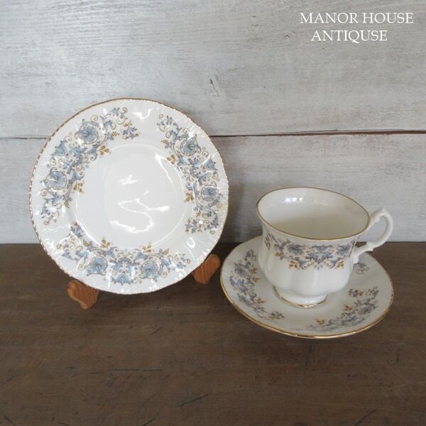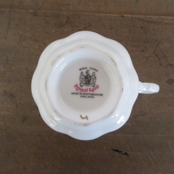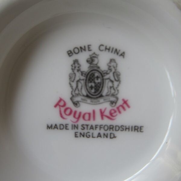 こちらの商品は、イギリスより入荷致しましたヴィンテージ雑貨 英国製 Royal Kent のカップアンドソーサー、ケーキプレートのトリオです。