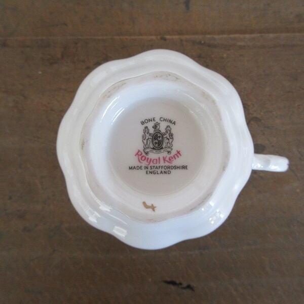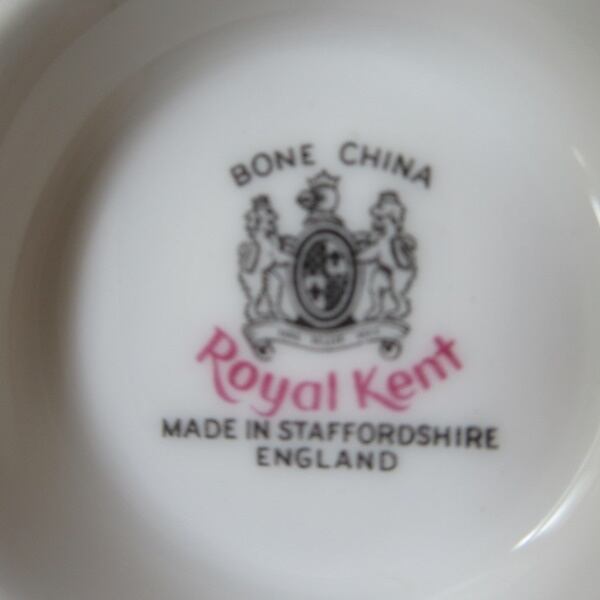 こちらの商品は、イギリスより入荷致しましたヴィンテージ雑貨 英国製 Royal Kent のカップアンドソーサー、ケーキプレートのトリオです。