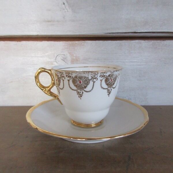 こちらの商品は、イギリスより入荷致しましたヴィンテージ雑貨 イギリス製 Leonard St Pottery のカップ、 チェコスロバキア製 Moritz Zdekauer ソーサー、ケーキプレートです。