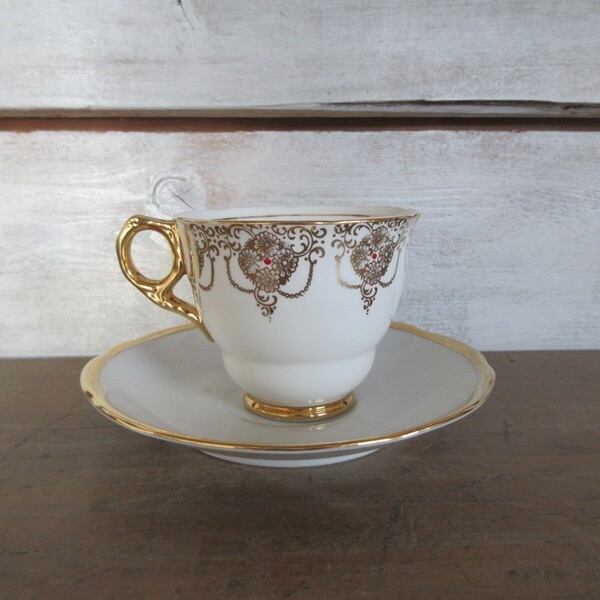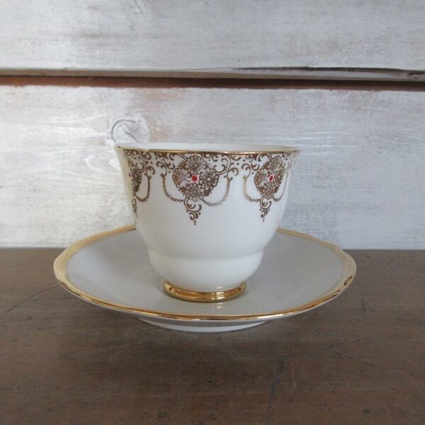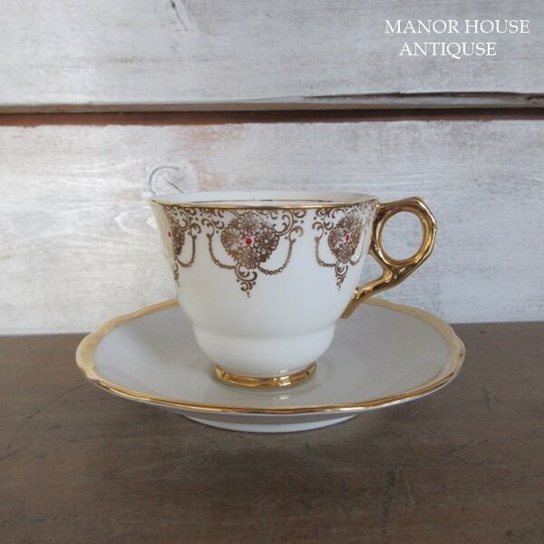 こちらの商品は、イギリスより入荷致しましたヴィンテージ雑貨 イギリス製 Leonard St Pottery のカップ、 チェコスロバキア製 Moritz Zdekauer ソーサー、ケーキプレートです。