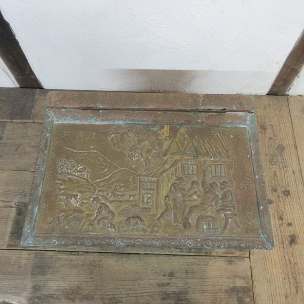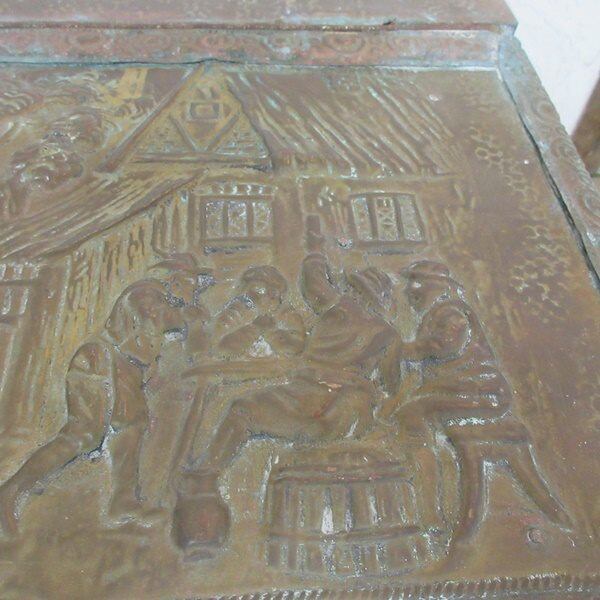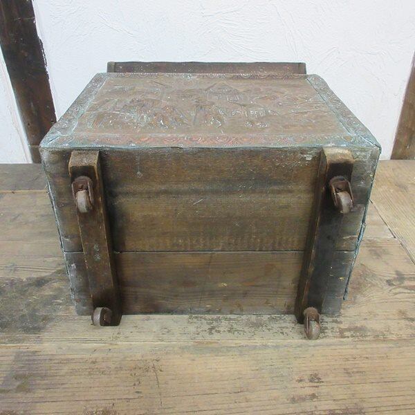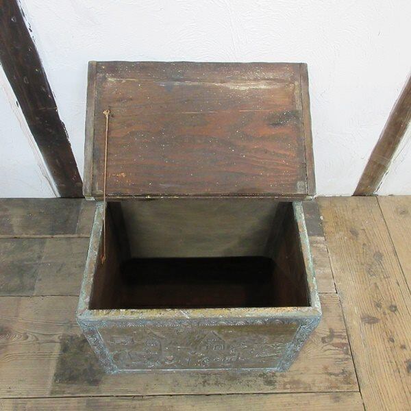 ブラスに打ち出し装飾が施された渋いお品です。小物入れやダストボックスなどにお薦めです。