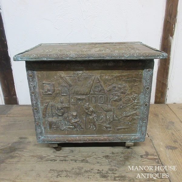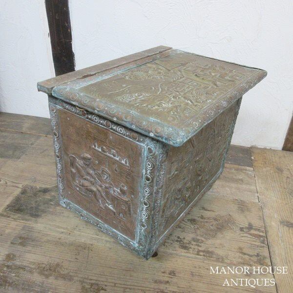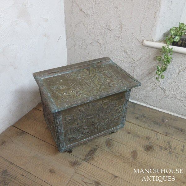 イギリス アンティーク 家具 コールボックス 石炭入れ ダストボックス 収納 ブラス 真鍮 木製 英国 SMALLFUNITURE 6607d