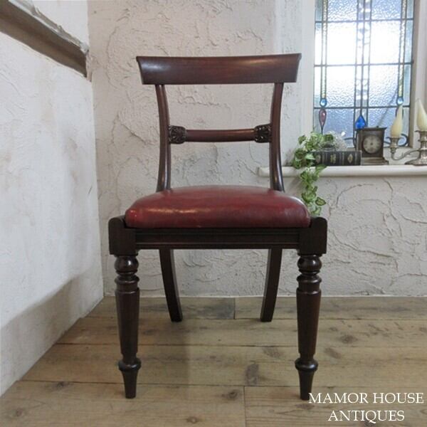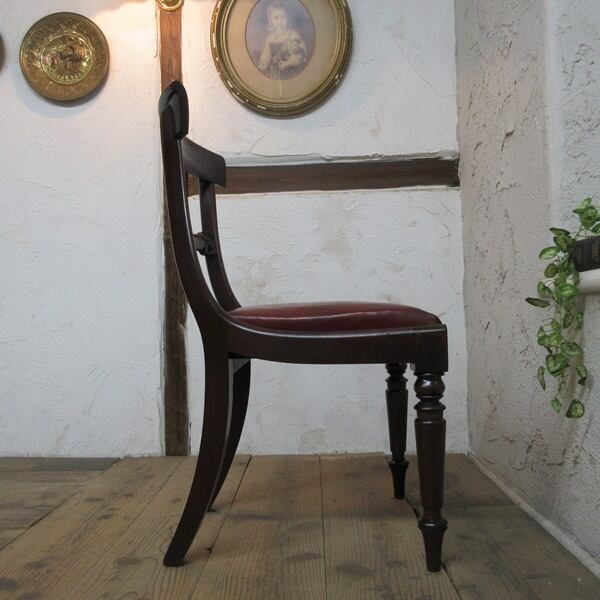 リージェンシー様式の優雅なチェアです。また座面にはリアルレザーが使用されております。
