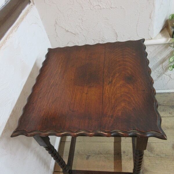 パイクラストエッジの天板にツイストレッグのイギリス定番のデザインです。テーブルクロスを敷いて花瓶やプランツなどを飾ってみてはいかがでしょうか。